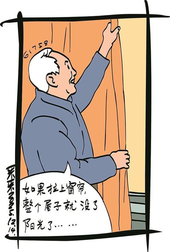 孟大爷拉着窗帘的手一顿,语气温和地说:“大发,你看书刺眼,可以坐到别的地方去。如果拉上窗帘,整个屋子就没了阳光。再说了,有阳光多好,整个屋子都是灿烂的。”